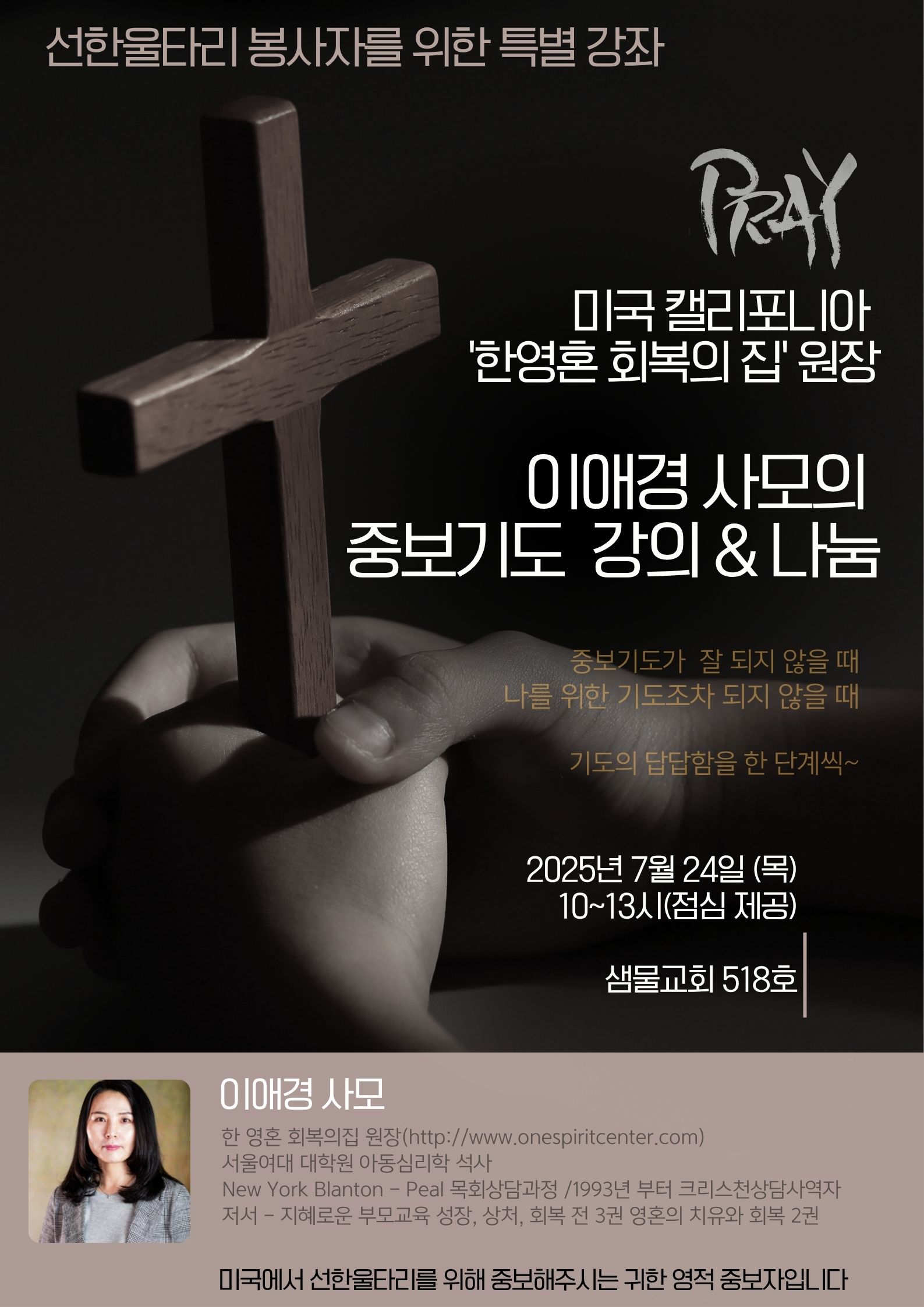 미국 캘리포니아 한영혼 회복의 집 원장이신 이애경사모의 중보기도 강의 및 나눔